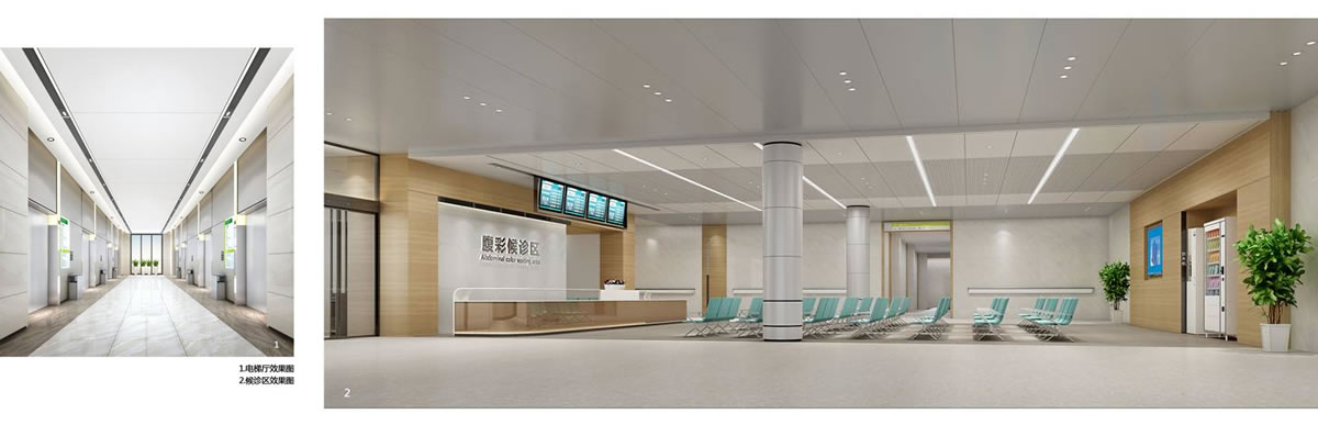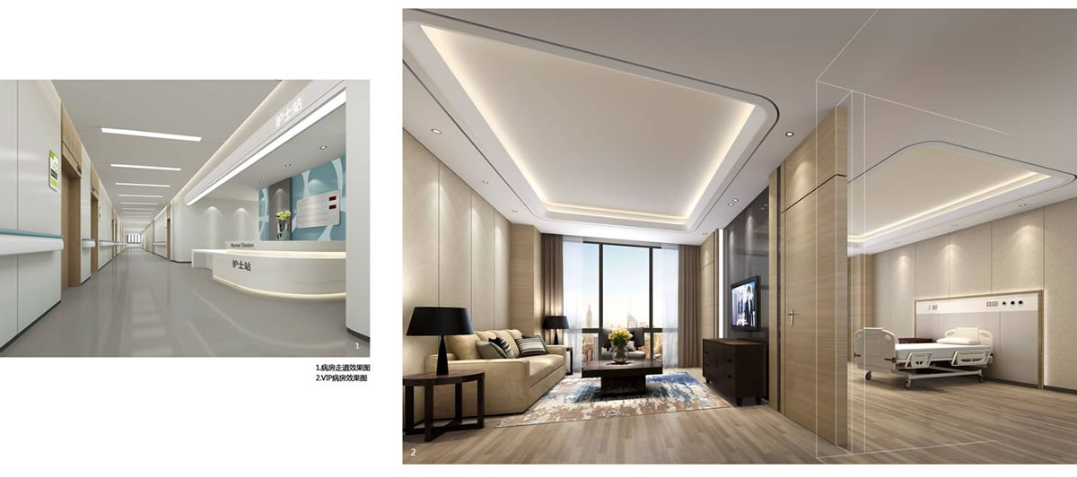 在醫院空間設計上強調功能性,結構和形式的完整,更追求材料、技術、空間的表現深度與精確。多處使用簡單的流線來形成組織空間。主色調由白色、淺黃色結合營造出簡潔大氣、柔和淡雅的醫療空間,給予人一種溫暖優雅的感受,能撫慰患者的心情,使他們積極配合診療。