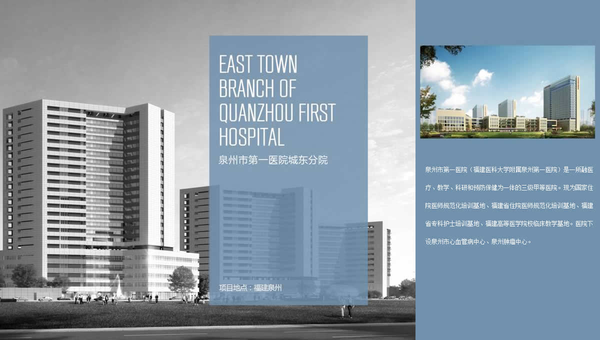 泉州市第一醫院(福建醫科大學附屬泉州第一醫院)是一所融醫療、教學、科研和預防保健為一體的三級甲等醫院。現為國家住院醫師規范化培訓基地、福建省住院醫師規范化培訓基地、福建省專科護士培訓基地、福建高等醫學院校臨床教學基地。醫院下設泉州市心血管病中心、泉州腫瘤中心。