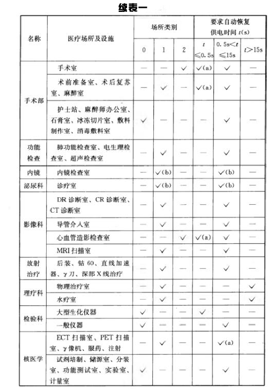 2、醫療場所分類及自動恢復供電時間宜符合表一-規定。