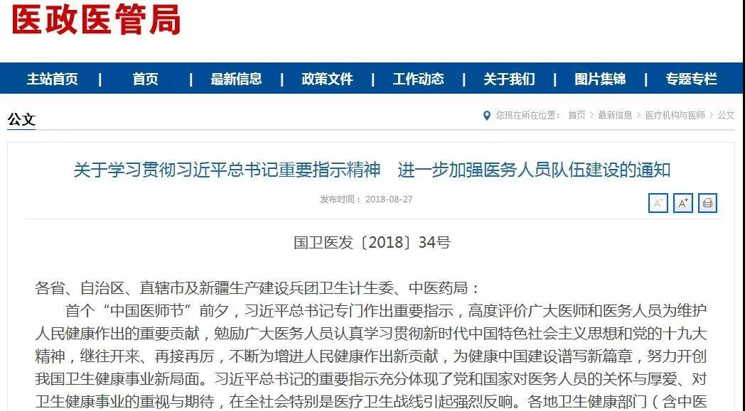 8月27日,國家衛生健康委員會、國家中醫藥管理局聯合發布《關于學習貫徹習近平總書記重要指示精神 進一步加強醫務人員隊伍建設的通知》。