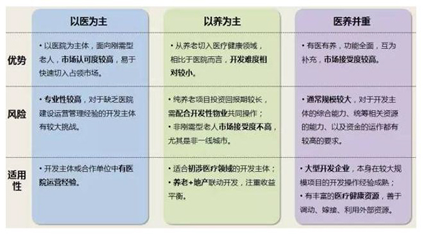 醫養結合項目中,以養為主的模式,通常以養老社區/公寓為依托,配套二級及以下醫院,滿足社區老人日常看病和急救的需求。