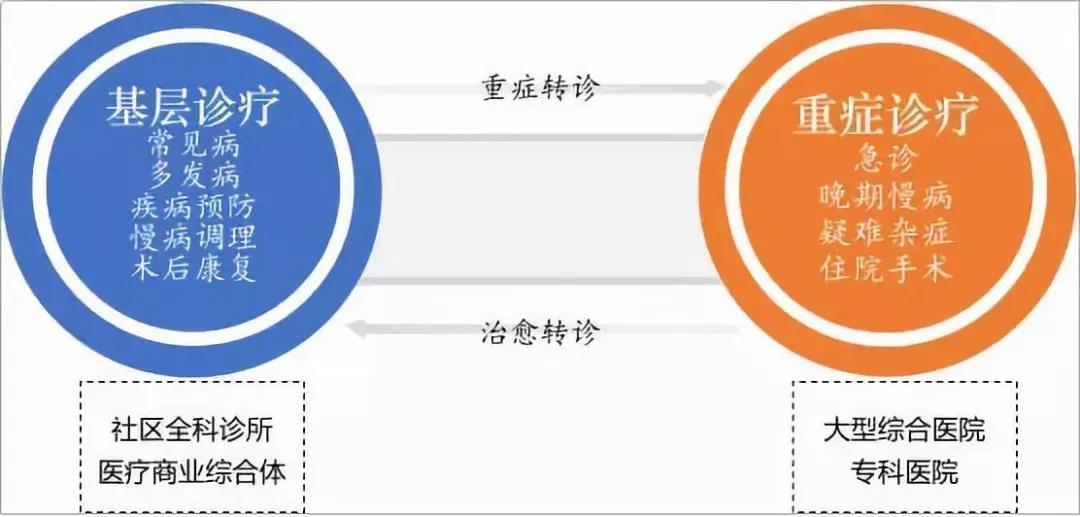 我國基層醫療衛生機構至城市二級醫院都歸為基層首診服務范疇,三級醫院則向下轉診治療恢復期、術后恢復期患者。