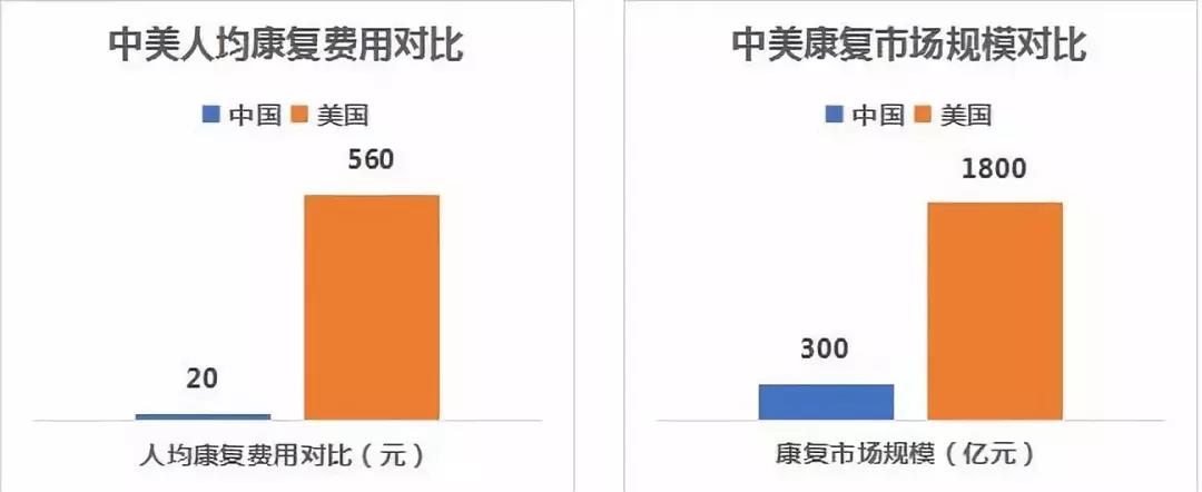 作為繼臨床醫(yī)學(xué)和預(yù)防醫(yī)學(xué)之后的第三醫(yī)學(xué),康復(fù)醫(yī)學(xué)服務(wù)于醫(yī)院后市場,有助于恢復(fù)患者身體機(jī)能、提高生活質(zhì)量。同時(shí),作為分級診療雙向轉(zhuǎn)診的最后一環(huán),康復(fù)醫(yī)療也是完善國家醫(yī)療衛(wèi)生體制不可或缺的組成部分。然而我國康復(fù)醫(yī)療發(fā)展階段與發(fā)達(dá)國家相比仍有很大差距,我國需要進(jìn)行康復(fù)治療的人口數(shù)量超過一億,參考美國人均康復(fù)消費(fèi)標(biāo)準(zhǔn),我國康復(fù)醫(yī)療理論市場容量將達(dá)千億以上。根據(jù)目前康復(fù)行業(yè)18%的年復(fù)合增長率計(jì)算,2022 年我國康復(fù)醫(yī)療產(chǎn)業(yè)規(guī)模有望達(dá)到1033億元。