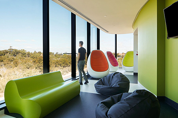 兒童醫院設計時,必須考慮到兒童就醫時都會有1到2位每時每刻陪同的家屬,甚至更多的訪客,所以應該為患者的親屬們預留一定空間,并設置適合長期陪同的相應設施。
