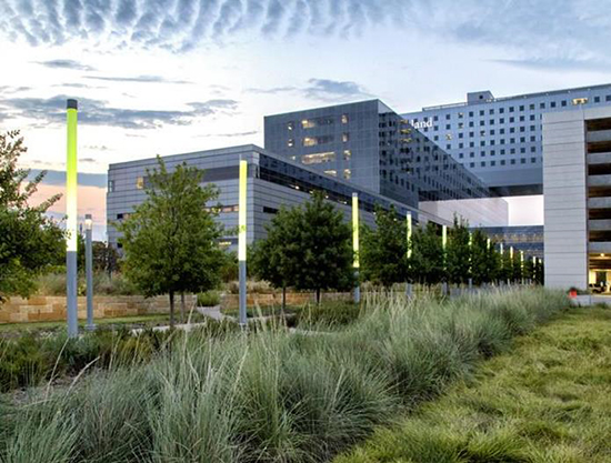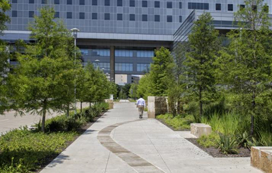 這些花園能讓醫(yī)院員工、患者及其家屬、探訪者親近自然,并有效緩解不良情緒,釋放壓力,同時還為人們提供一條從醫(yī)院通往城市區(qū)域的人行道。這個醫(yī)院和區(qū)域設計在技術先進、易進入和修復環(huán)境下提升了臨床護理、教學和研究性能。
