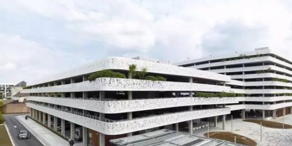 這是一座多層停車場,位于根特市環路,一眼可見。項目區域劃分為兩個部分,高容量的停車場分別分布在兩座建筑體里。兩座較小的建筑體的創建更有效地融合于空間環境和醫院園區規模中,從而創建通往醫院的視覺軸線。