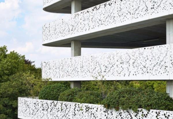 整個項目無疑就是一件大型的公共藝術品,同時,因為其構造的設置,在遮蔽停車場內部結構柱梁護欄等因素的同時滿足大量的通風需求,實現自然能源的最佳利用。