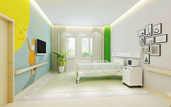 病房設計應盡量家庭化,可以擺放團體物品、玩具的架子,讓孩子把醫院與家聯絡起來,還可以利用活潑色彩、卡通圖案等,妝點出個性化而富有童趣的空間,即使是醫用設備,也能通過裝飾將其蔭蔽起來,從而減少醫院的冰冷感。