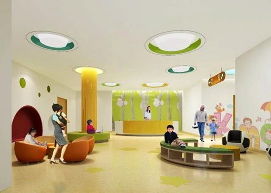 在候診室、兒童活動空間里可較多地使用大面積暖色調來讓兒童們感覺溫暖、有趣,消除他們的恐懼感,化解他們對治療產生的抵抗情緒,地面可采用暖黃色,黃色可令人愉悅,激發人的活力。