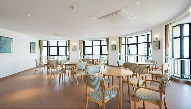 這個功能空間中應該設計在建筑外圍,既保證有舒適的采光,又需要外圍配合有景觀樹蔭遮擋,不至于光線過于強烈刺眼,可以讓老人們長時間在這里休憩停留。