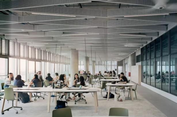 此外,開放的社交廣場和貫穿不同工作室、教室的交通系統(tǒng)創(chuàng)造偶遇機會和促進社交互動。隨著學(xué)習(xí)和工作越來越具有協(xié)作性,社交就會自然而然發(fā)生,這些空間與學(xué)校學(xué)習(xí)空間相得益彰。