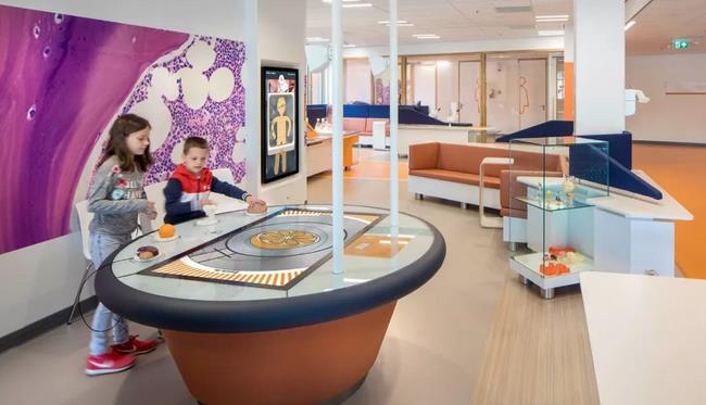 醫(yī)院的3層,設計了一個戶外花園,吸引孩子們走出去擁抱自然風景。醫(yī)院還設計了“科學探索中心”,通過互動裝置幫助孩子們了解疾病的診斷和治療,從而降低他們的心理壓力。