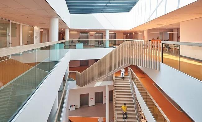 1-3層的步行梯是精心設計的,陽光能透過玻璃吊頂灑落下來,給人溫暖。此外,患者、家屬及醫(yī)院員工還可以適當運動,以緩解身心疲勞,調動積極情緒。