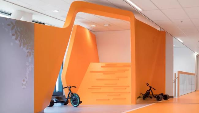 當然,患兒的需求始終是這一兒童醫(yī)院空間設計的重點。Princess Máxima Center里有很多兒童活動空間,讓患兒通過玩耍、探索、學習,來促進他們的運動發(fā)育和社會情感認知。
