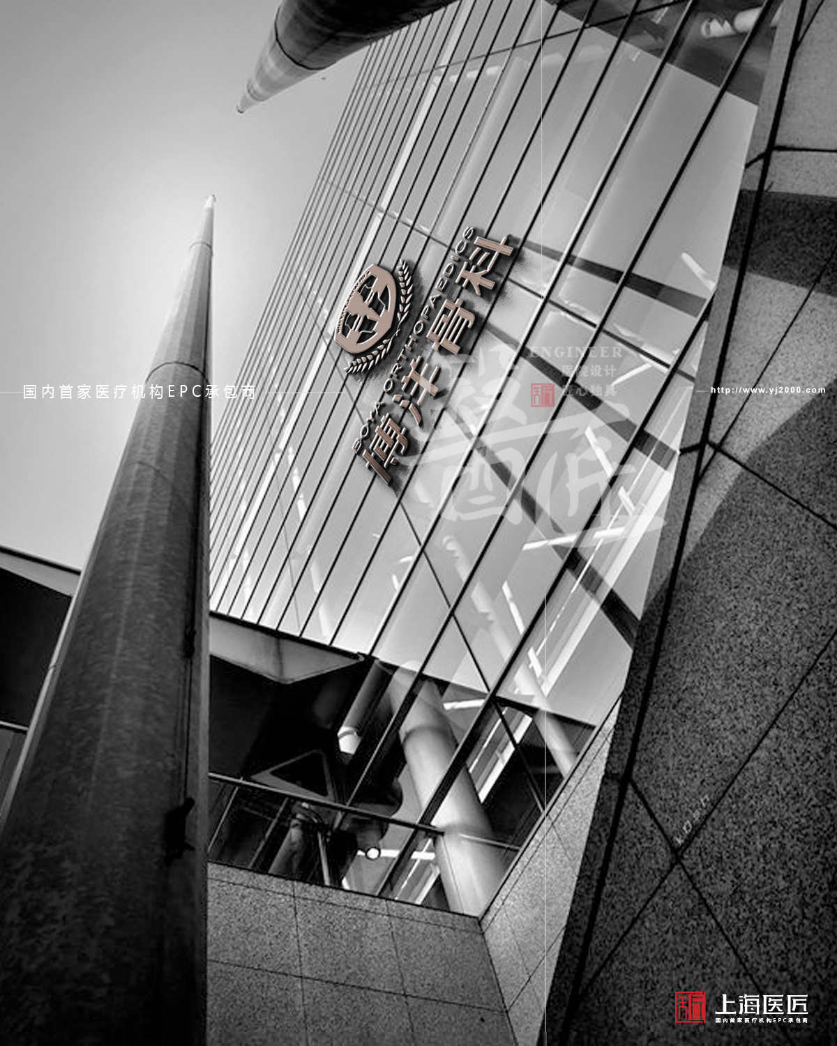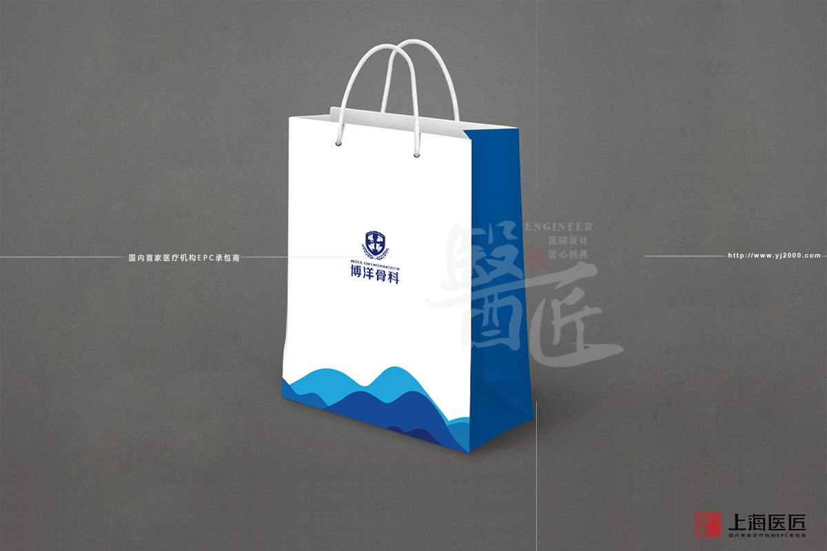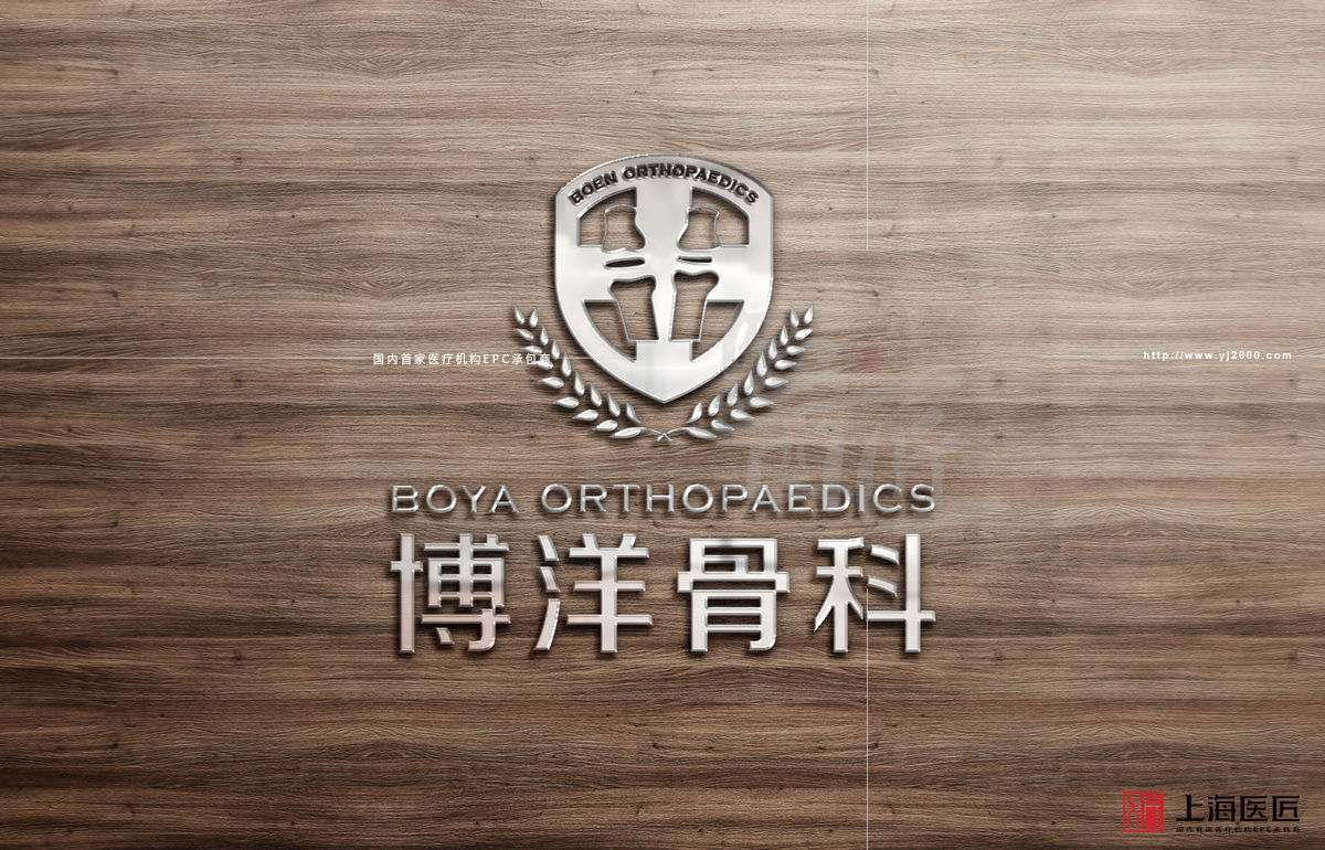 醫院標志以骨骼的形狀為主要元素,突出醫院行業特性和服務范圍,底部兩片葉子象征著健康、生命,體現醫院為維護人民健康而努力的宗旨,也展現醫院以人為本,以患者為中心的服務理念。