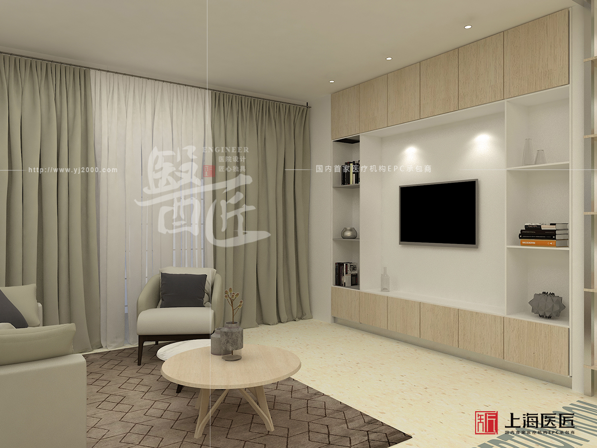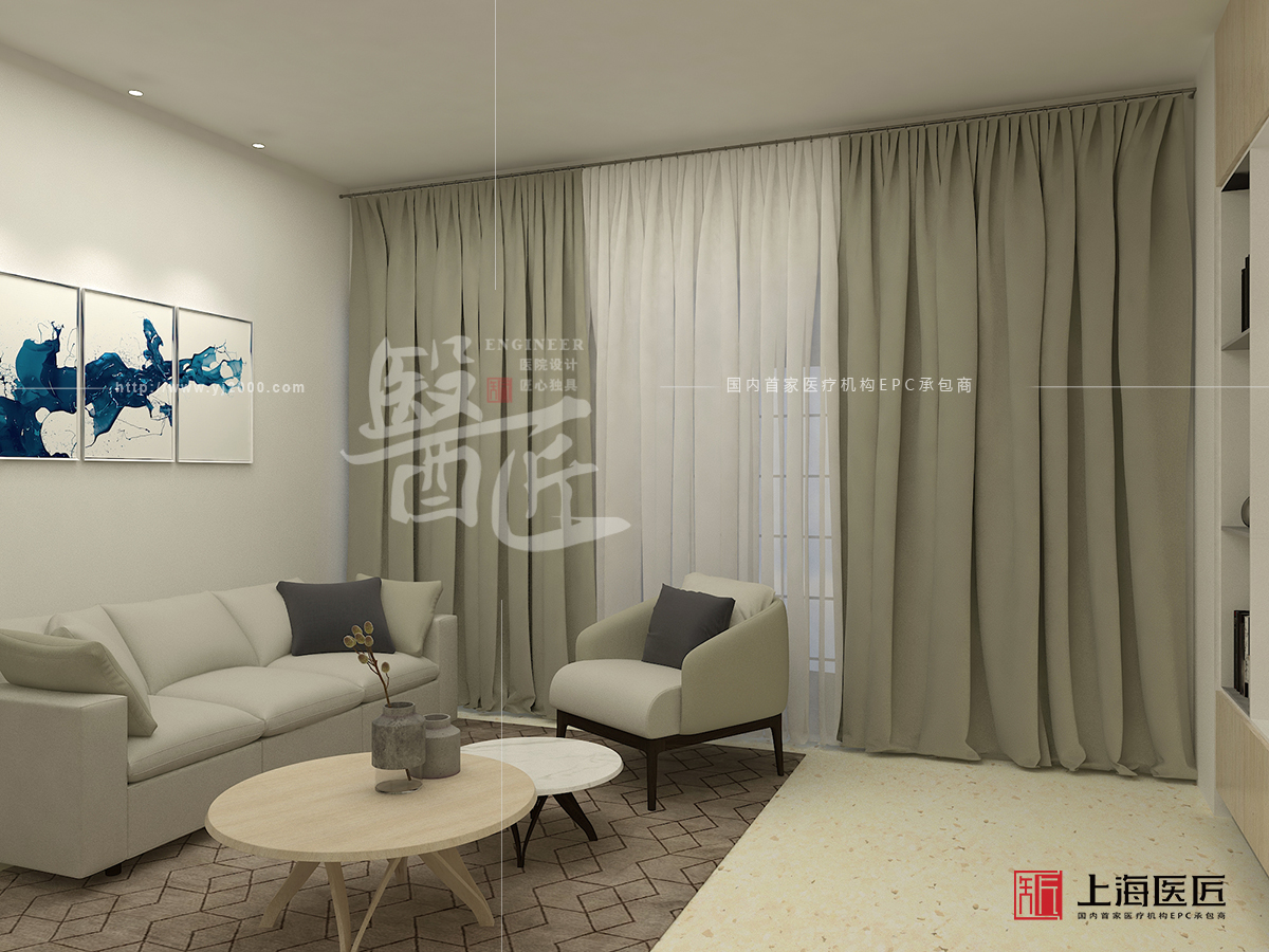 形式多樣但別致簡約的沙發、藝術性的油畫、綠色盆栽、家具的擺放等,營造一個溫馨舒適、潔凈自然醫療環境,整個空間簡約、大方、優雅、且富有活力。