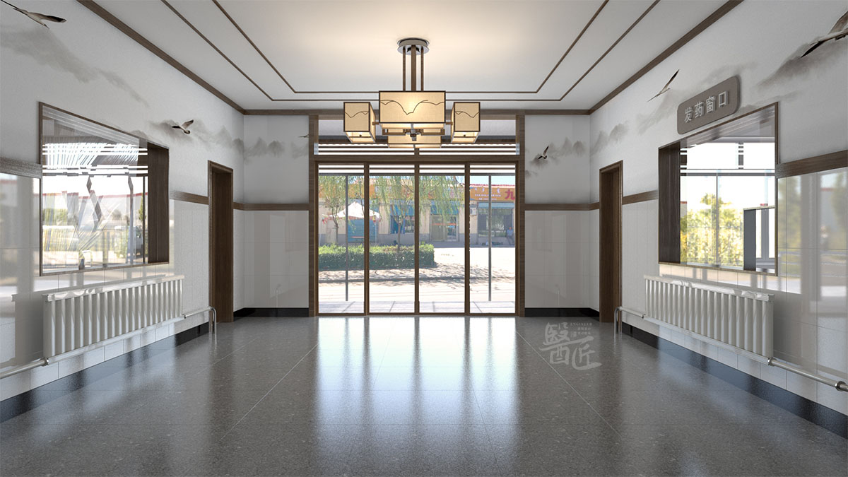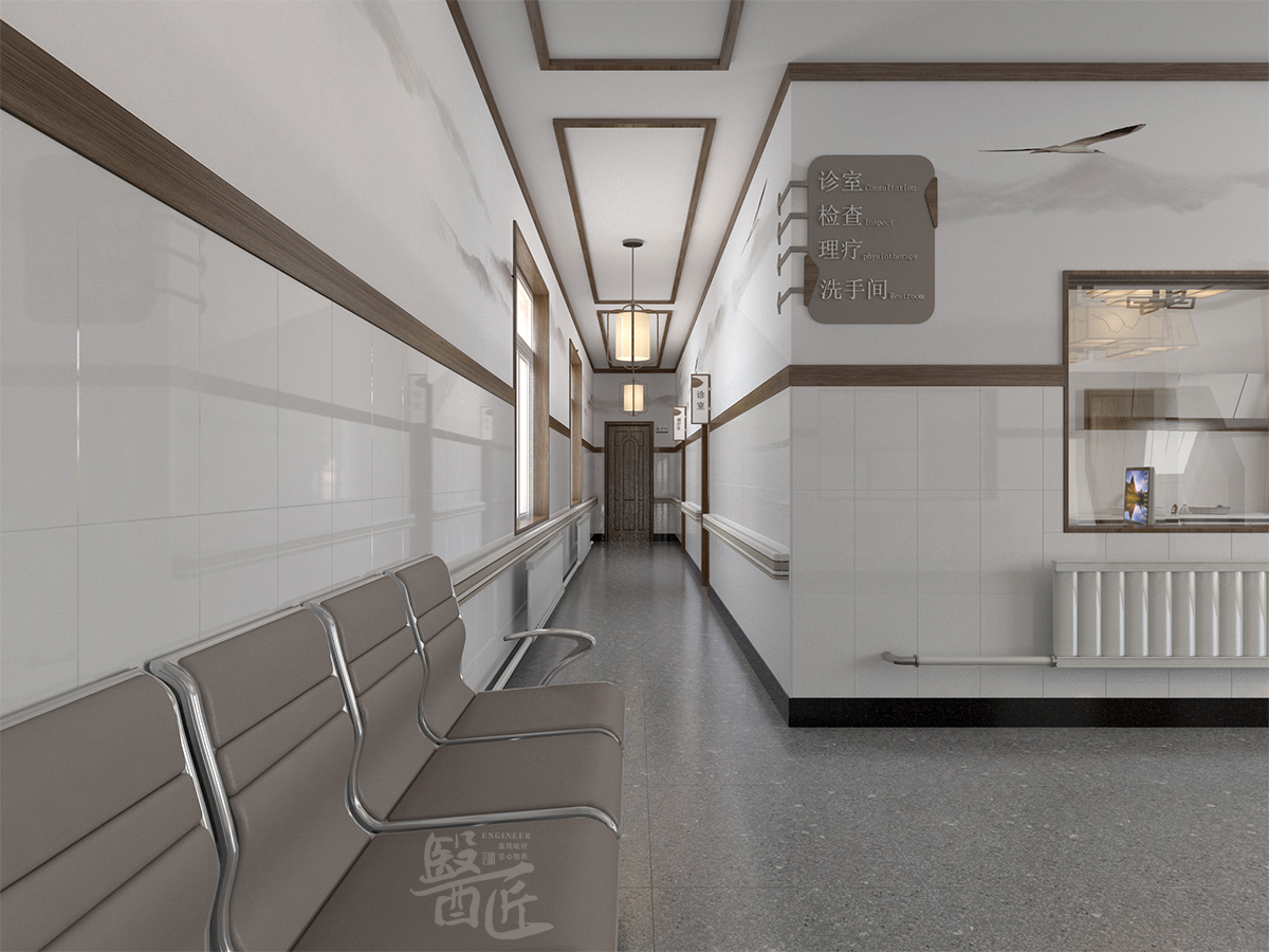 根據這個思路,設計師在設計上使診所的空間介于正式與非正式之間,在保留民族特色的情況下,淺色系的色彩搭配使整個空間看上去猶如一幅寫意的水墨畫,東方式的婉約優雅迎面而來,符合了診所中醫為主特色。在醫療設備與室內裝飾上選用符合空間色調的現代元素,使新中式的建筑設計達到很好的融合。