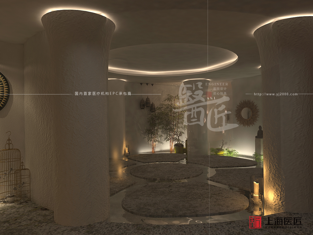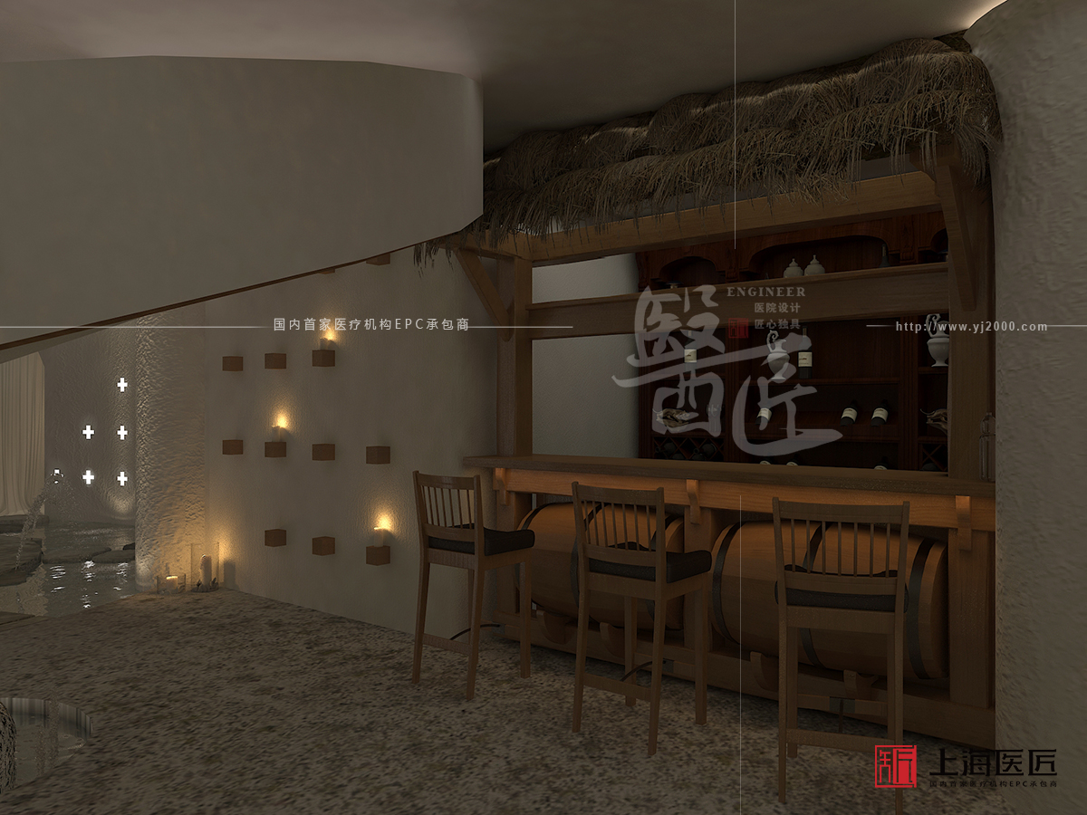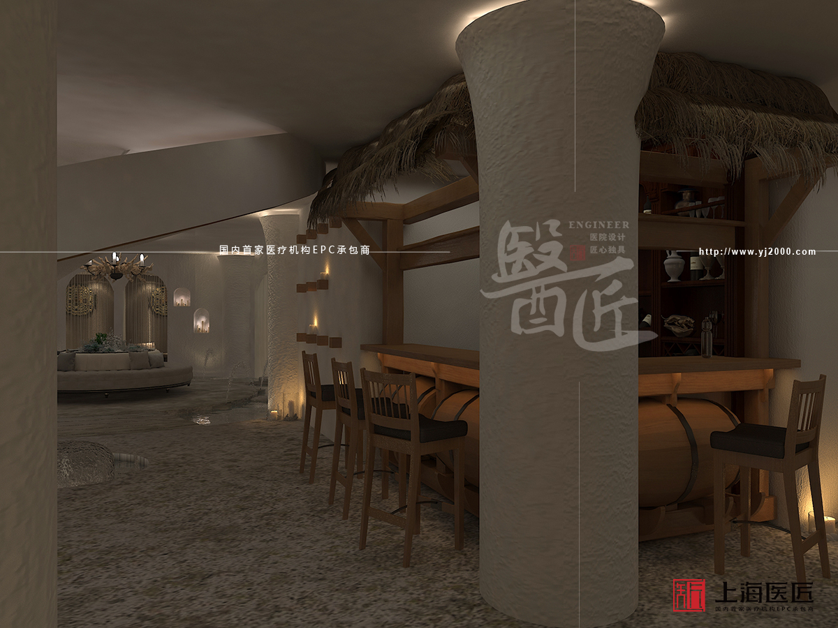 此外,診療區(qū)域以田園風(fēng)光為主題,選用一些藤編物件、陶制物品、布藝裝飾等,以及使用紋理地磚或地毯,營造出一種返璞歸真的自然之感,打造出自然淳樸、親切友好的室內(nèi)環(huán)境。