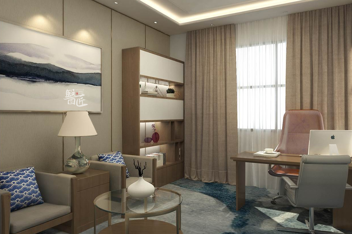 設計師以“中國風”元素為靈感,并將現代式的優雅注入其中,使空間趣味橫生,激發人們的好奇與探索。房間的裝飾通過簡明的材料糅合當代設計和傳統細節,輔以低飽和度的顏色,營造出寧靜、舒適的氛圍。大堂以原木色為主調,屏風層層疊進,帶有莊嚴的陣列感,穩重而雅致。設計師巧妙的以中國風元素為基調營造出簡約獨特的風情,將當代美學引進中式風格。古典元素與新中式的相遇,真切回應著對生活的美好向往,激發著人們對于美學的永恒探索。